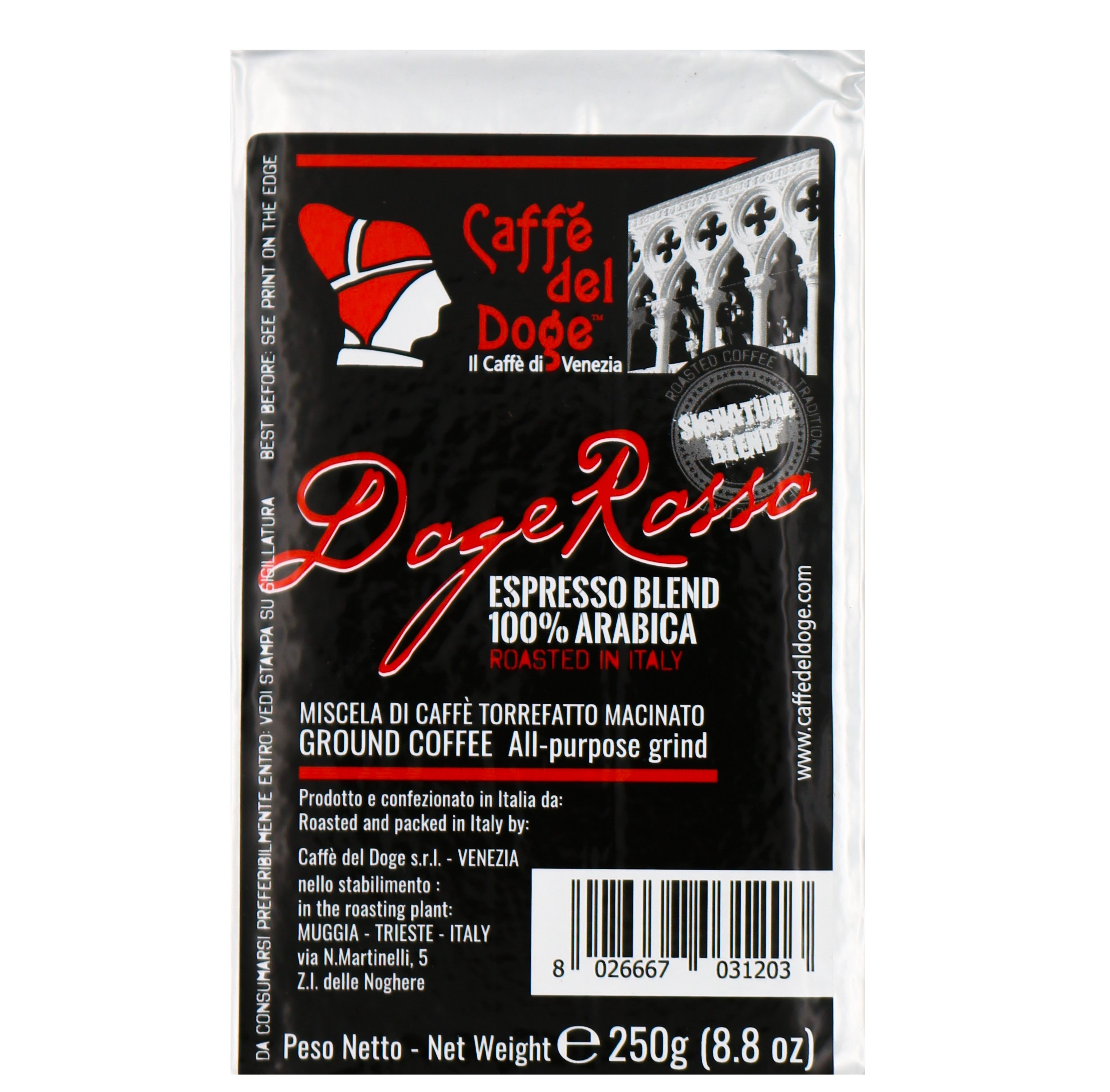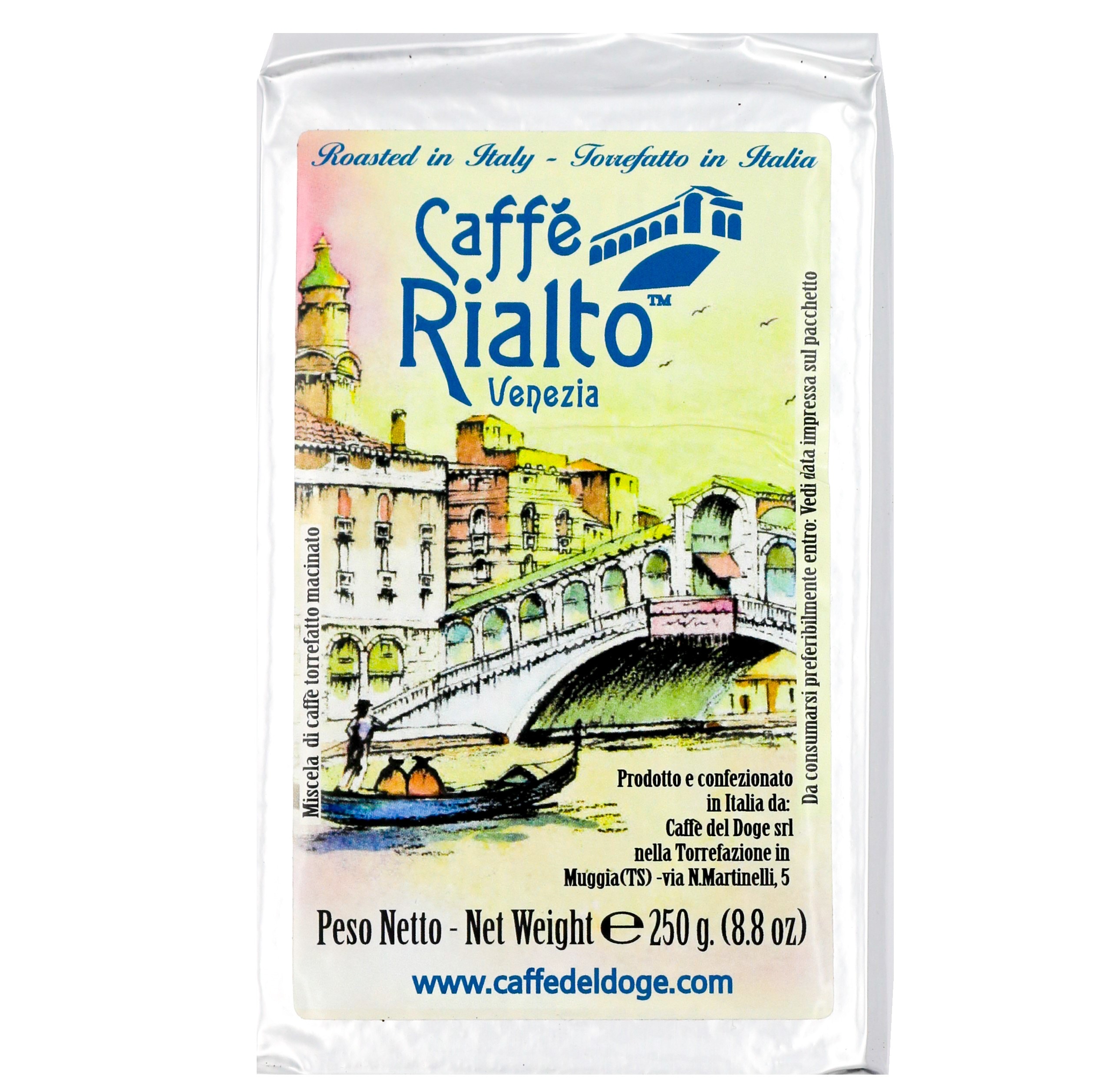 Diese Mischung der venezianischen preisgekrönten Rösterei Caffè del Doge zeigt eine große Persönlichkeit und besticht durch ein intensives und anhaltendes Aroma mit weichen und feinen Schokonoten Der geringe Säureanteil rundet diesen Kaffee ab. Die 100 % Arabica kommen aus Brasilien, Kolumbien, Guatemala und Indien. Jede Arabicasorte wird separat geröstet und nach traditionellem venezianischen Rösteiverfahren kalt gemischt. Der Exklusivimport nach Italien gewährleistet die absolute Transparenz der Herkunft. In der Tasse kommt jedes der verschiedenen Aromen voll zur Geltung.